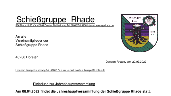 Der 1. Vorsitzende Leonhard Krampe lädt alle Vereinsmitglieder zur diesjährigen Jahreshauptversammlung am 8.4.2022 um 19:30 Uhr ein.