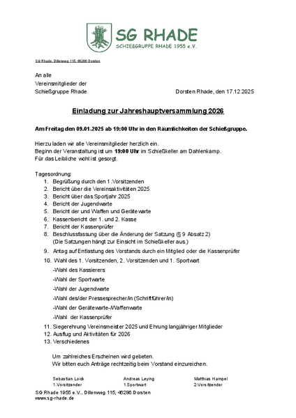 Einladung zur Jahreshauptversammlung