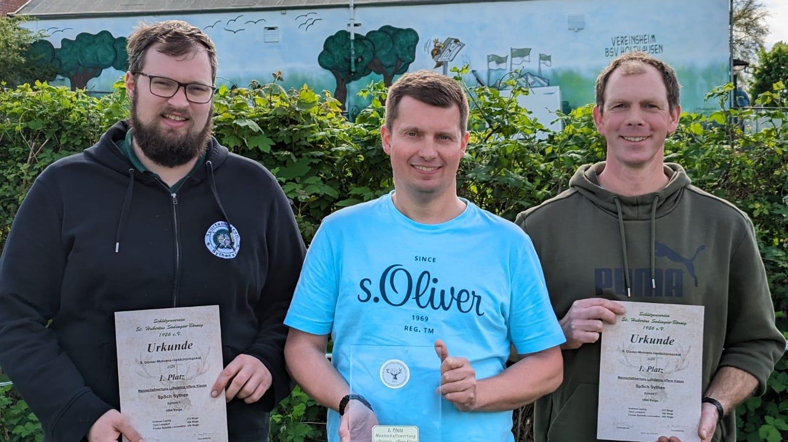 Am 3. März trat unser Andreas gemeinsam mit seinen Luftpistolen Mannschaftskameraden Timo und Florian aus der Westfalenliga beim Günther Mohrenz Gedächtnispokalschießen in Herne an. Begleitet wurden sie von Florian, der in der Disziplin LG antrat. Heute fand die Siegerehrung statt. Aus insgesamt 176 Startern, in den unterschiedlichen Disziplinen, konnte sich die LP Mannschaft als Sieger behaupten. Wir gratulieren Andreas und der Mannschaft herzlich zum Sieg. Darüber hinaus erzielte Andreas mit 372 Ringen das beste Einzelergebnis, welches ihm den Gesamtsieg in der Einzelwertung sicherte.